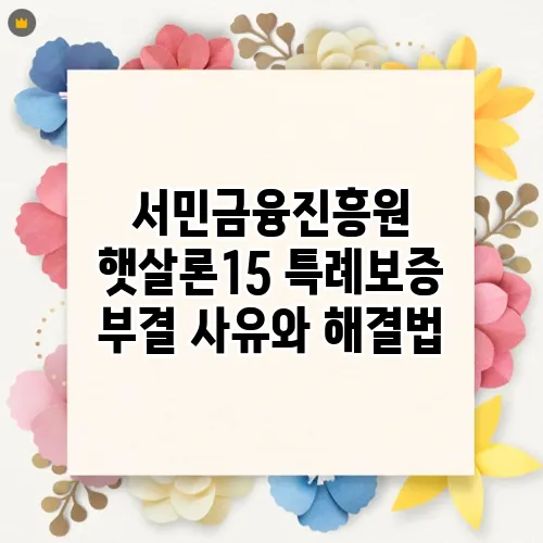 서민금융진흥원은 다양한 금융 지원 프로그램을 통해 서민들이 경제적으로 어려움을 겪지 않도록 돕고 있습니다. 그중에서도 햇살론15는 빠르게 성장하는 대출 상품으로 많은 사람들에게 사랑받고 있습니다. 하지만 햇살론15를 신청하는 과정에서 특례보증이 부결되는 경우도 적지 않습니다. 이 글에서는 부결 사유를 살펴보고, 이를 해결할 수 있는 방법에 대해 함께 알아보겠습니다.